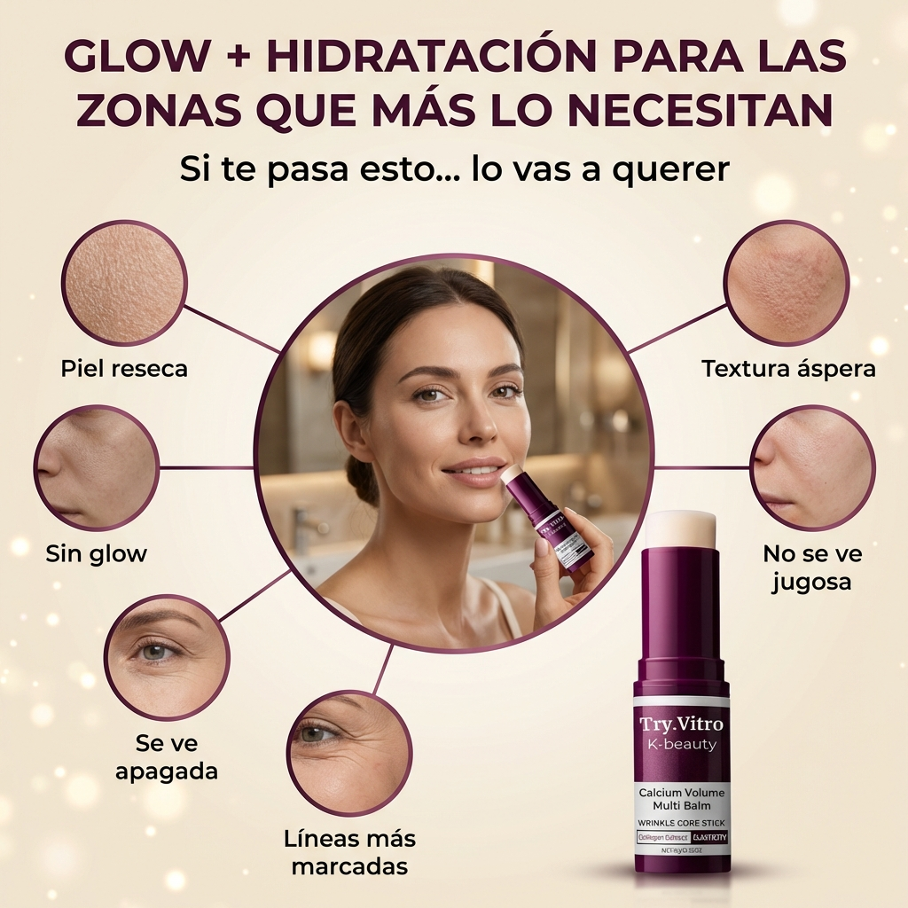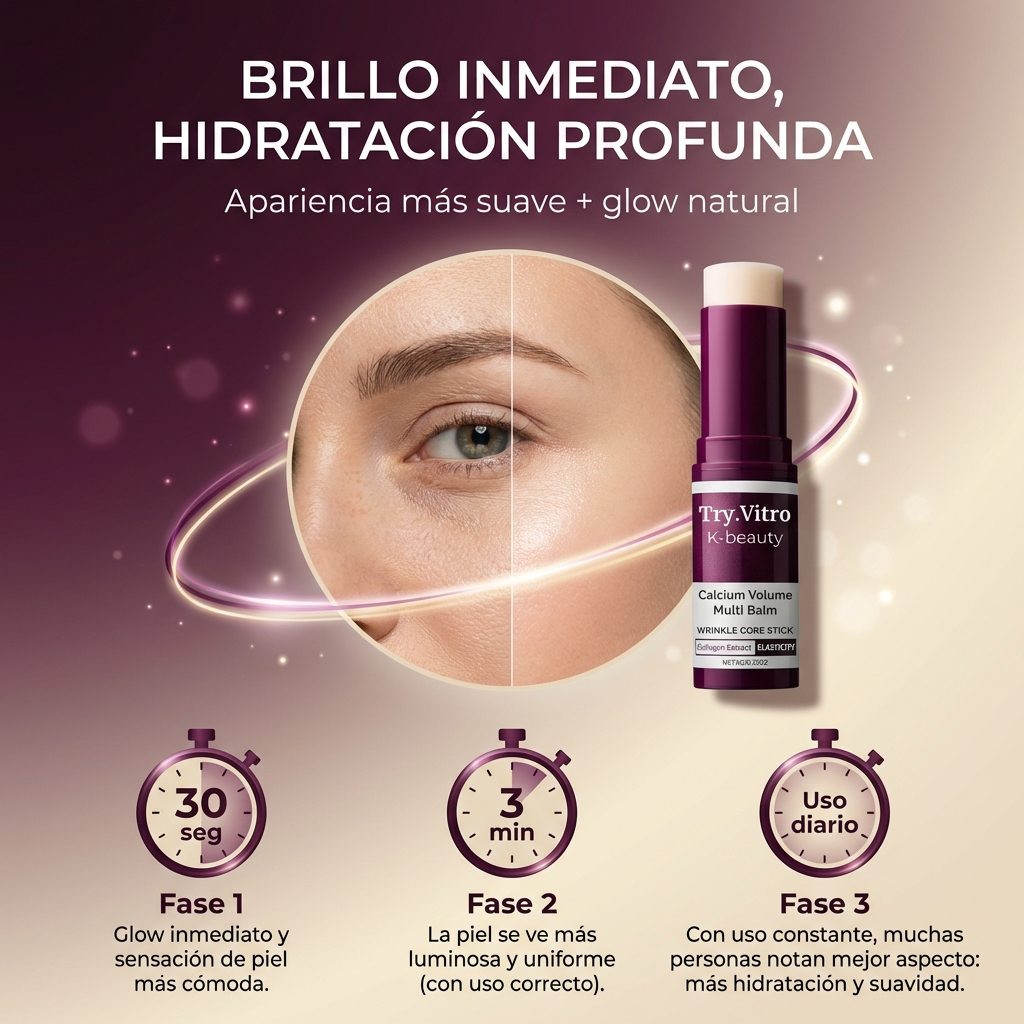 Te pasás Calcium Volume Multi Balm en las zonas que más lo necesitan y, en segundos, la piel se ve más luminosa, más prolija y con una apariencia más “jugosa”, sin sensación pesada.