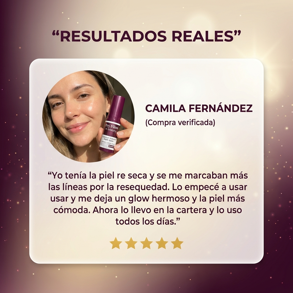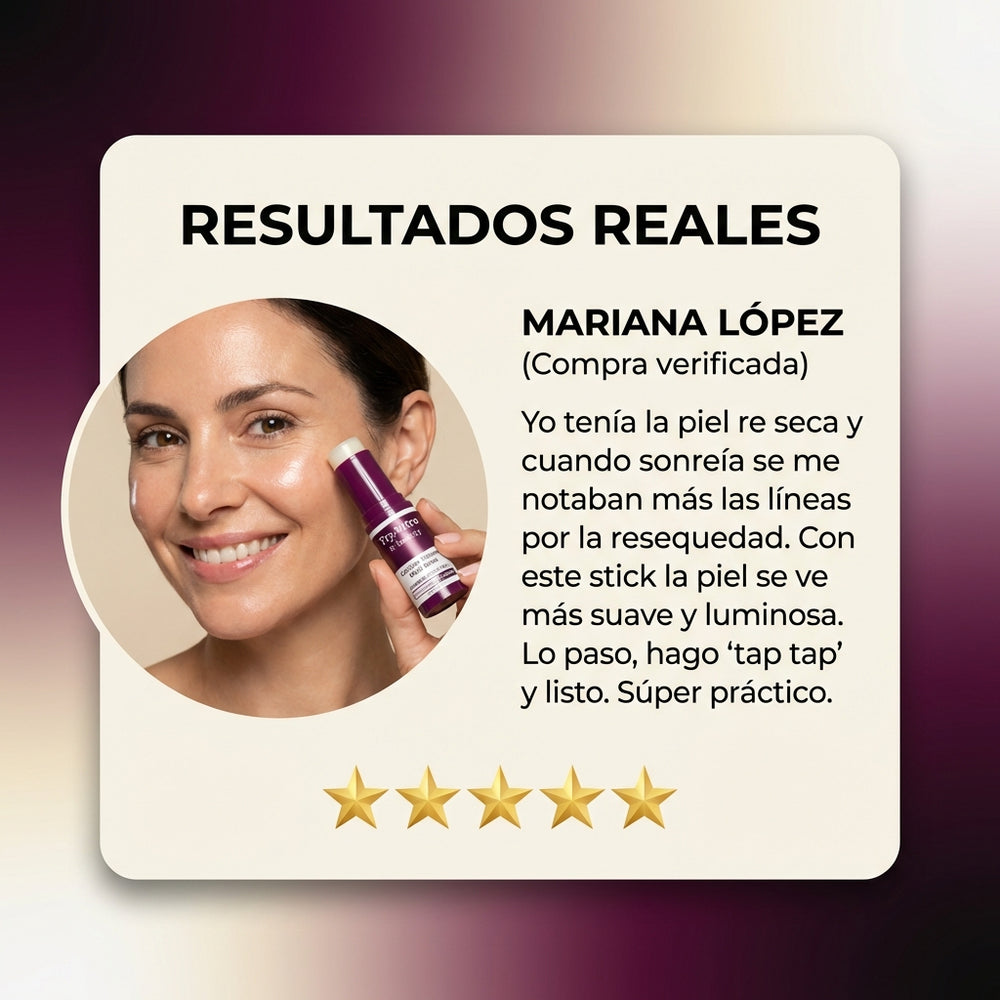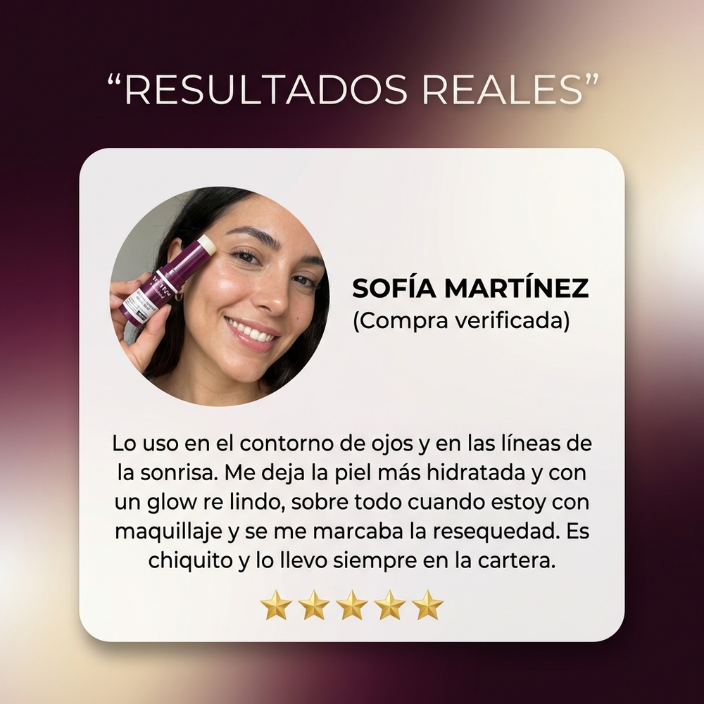 “Yo tenía la piel re seca y cuando sonreía se me notaban más las líneas por la resequedad. Con este stick la piel se ve más suave y luminosa. Lo paso, hago ‘tap tap’ y listo. Súper práctico.”